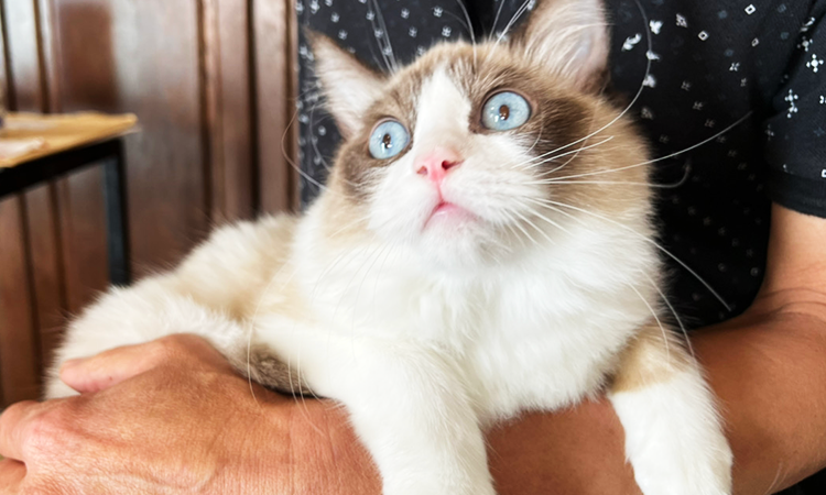 ラグドールはスキンシップやコミュニケーションがとりやすく、体は大きいですが、初めて猫を飼う人でも飼いやすい猫種です。
